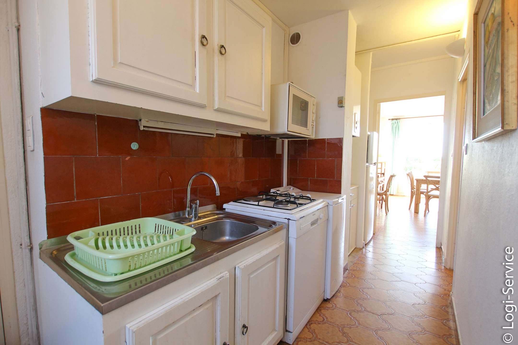 Practical apartment with kitchen in the entrance, separate bedroom, bathroom with toilet and an extended stay. Large private terrace facing East. Simply furnished but very well equipped, it is perfect for beachgoers.