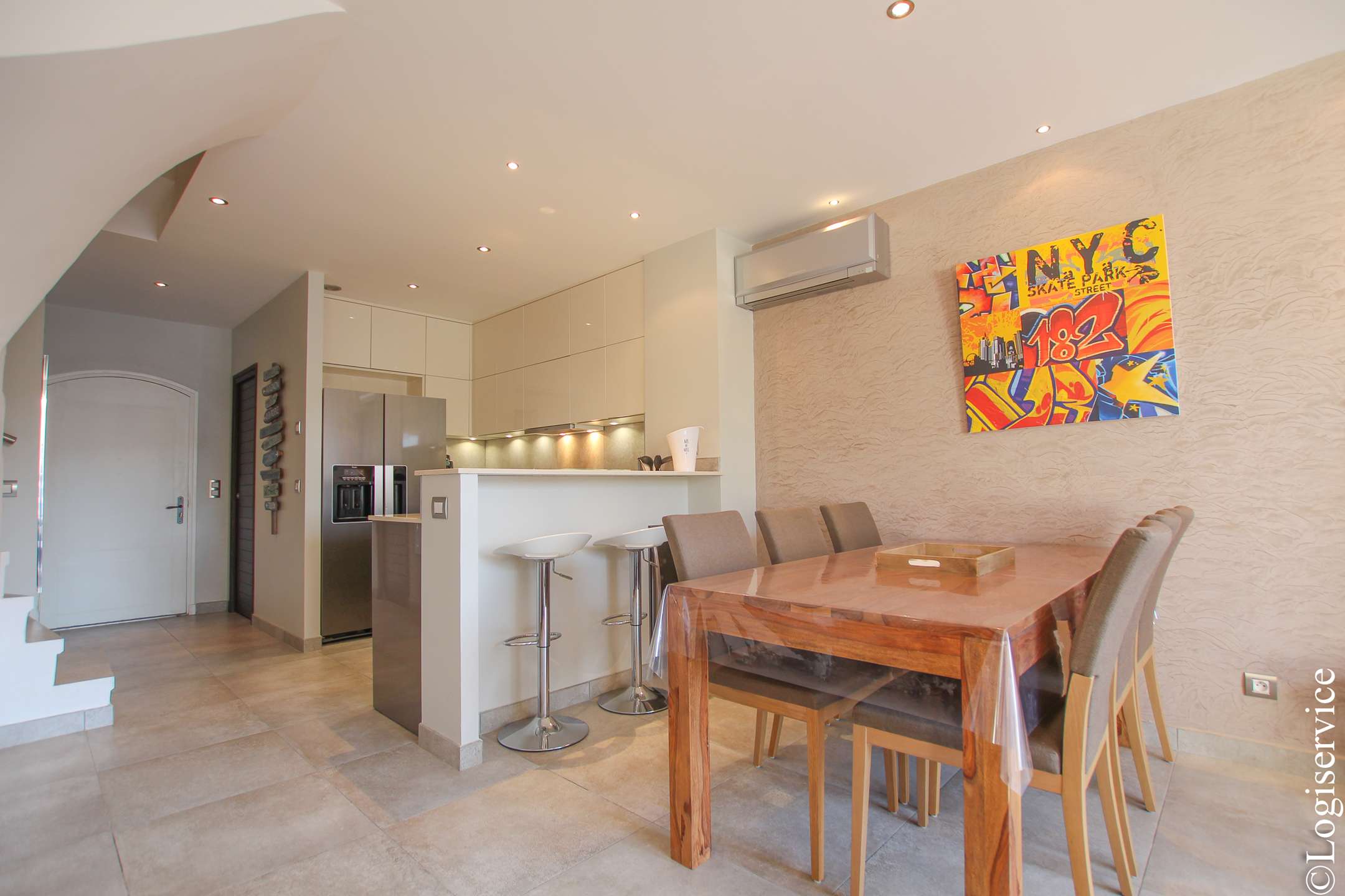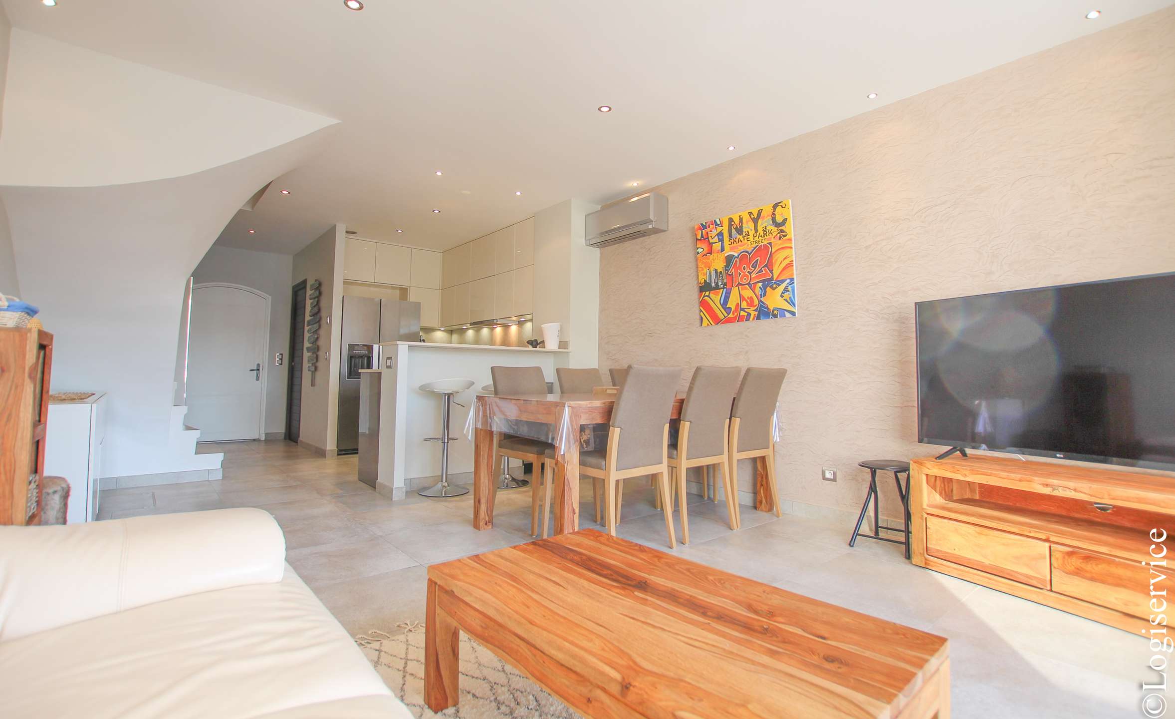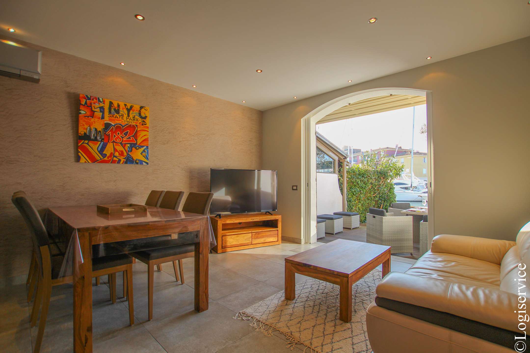 In a residential area, superb 2 bedrooms house fully renovated with AC and a 13 m mooring.