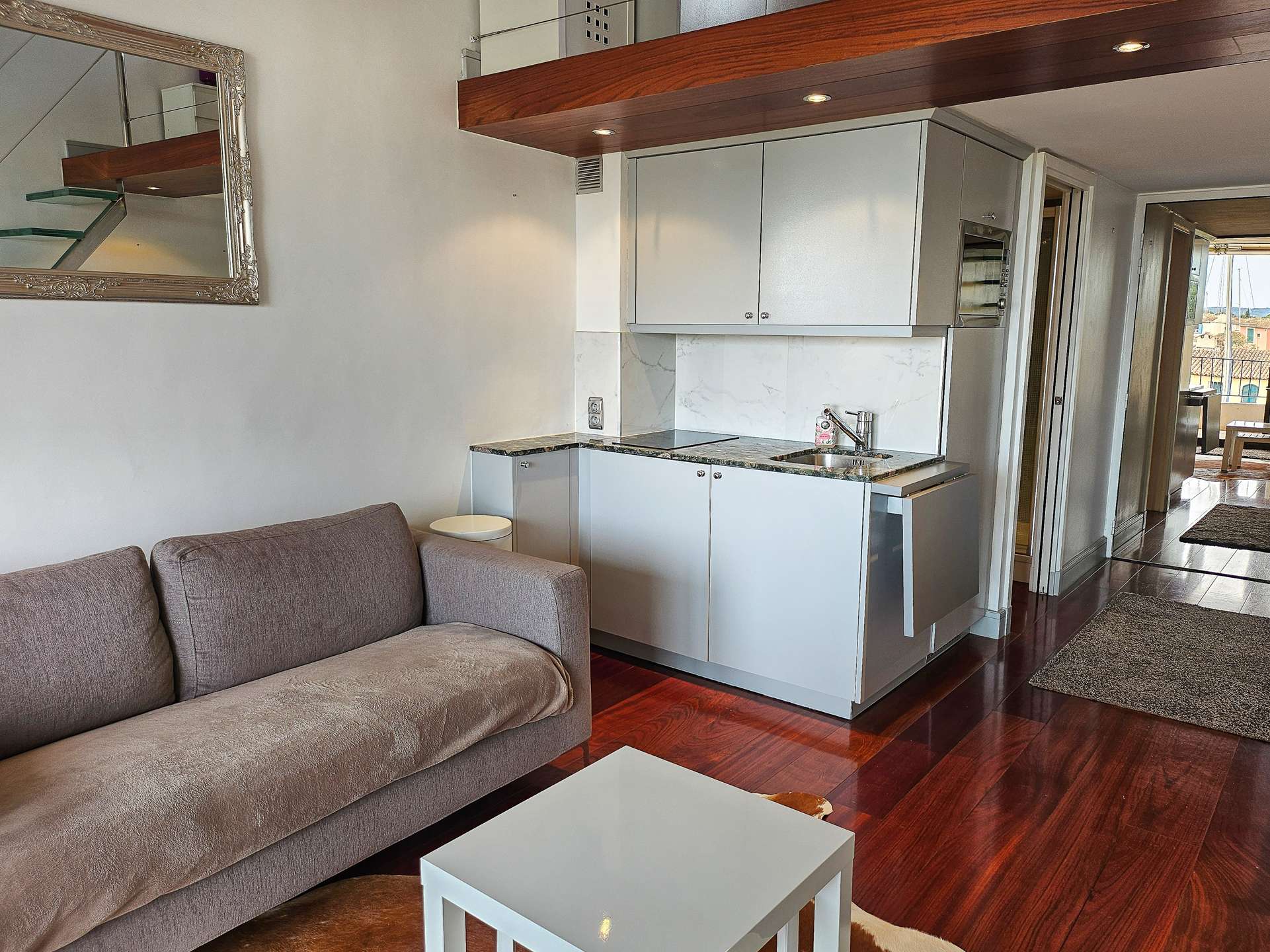 Idéalement situé entre Port Grimaud I et Port Grimaud II, ce superbe studio mezzanine climatisé entièrement rénové dispose d'une loggia orientée sud-est.