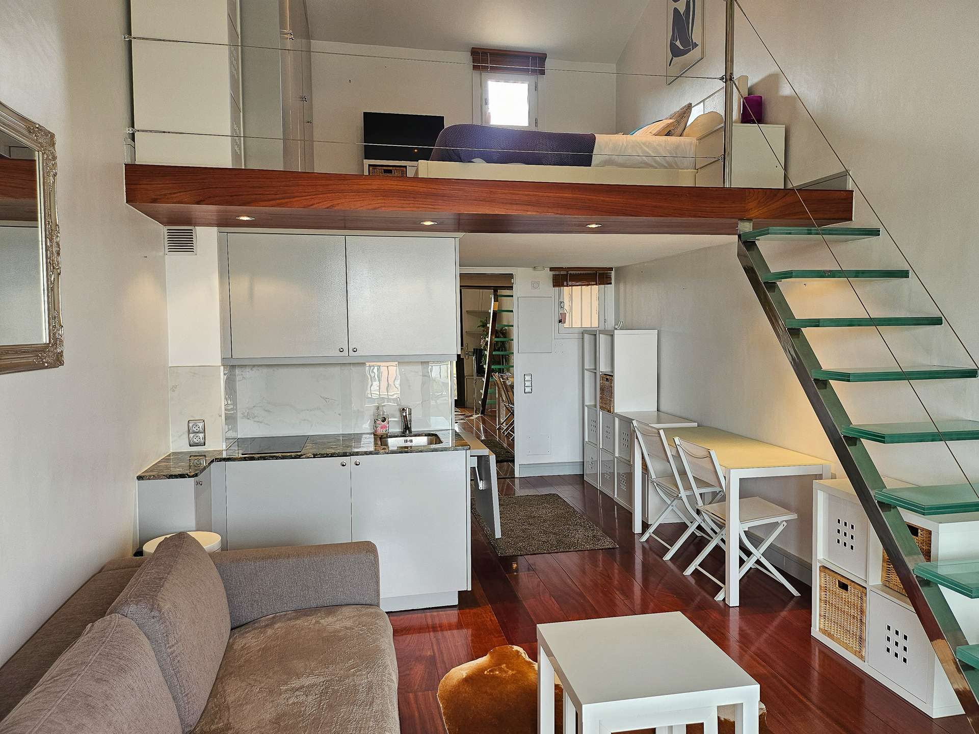 Adorable studio en mezzanine, doté d'une loggia, de la climatisation et du Wi-Fi.
