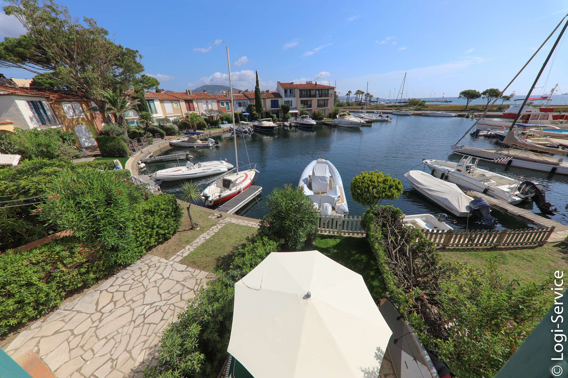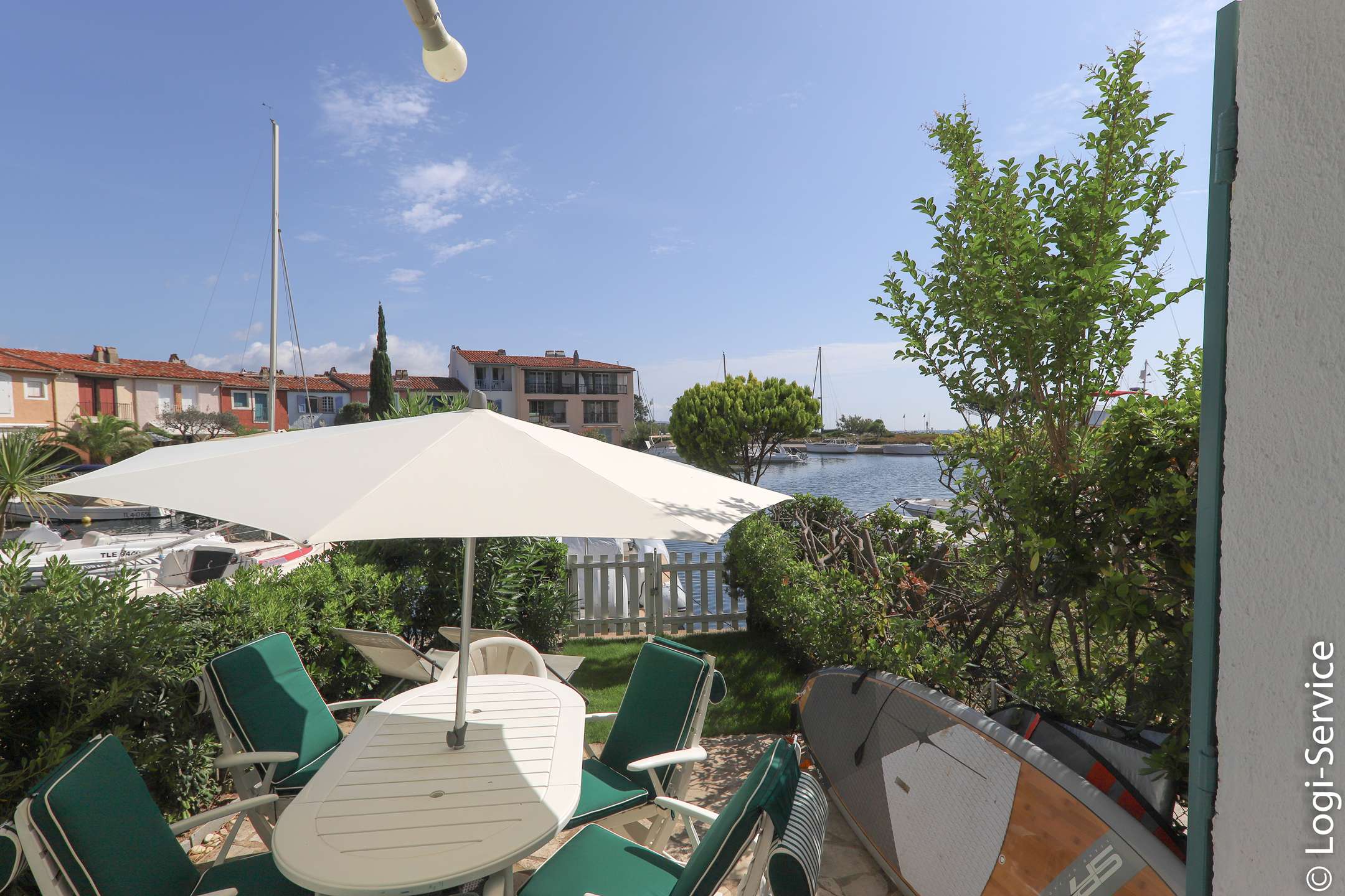 Maison 3 chambres climatisée, proche de la plage privée de Port Grimaud II, avec amarrage.